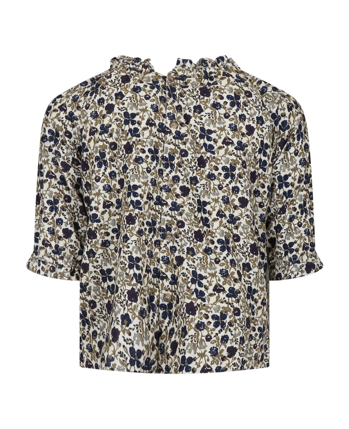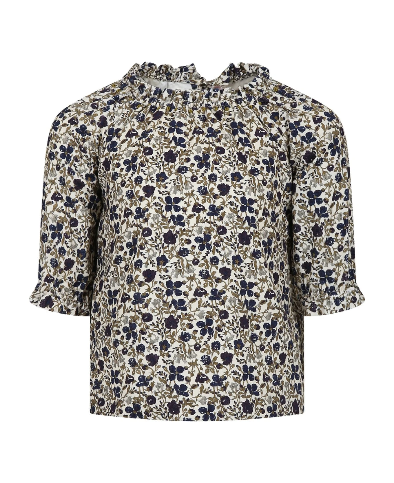 Multicolor casual dress in cotton, elastic crew neck, long sleeves with internal elastic cuffs. It is embellished with multicolor flowers all-over.