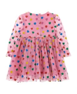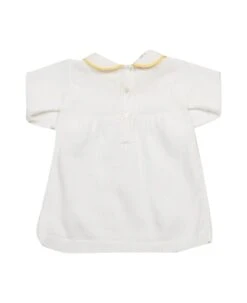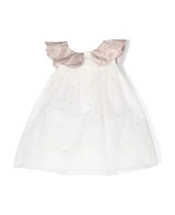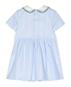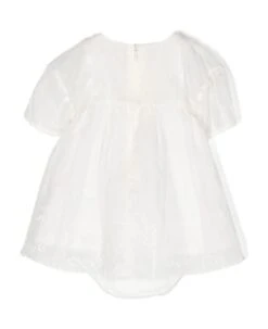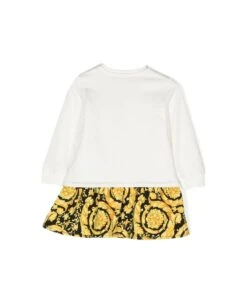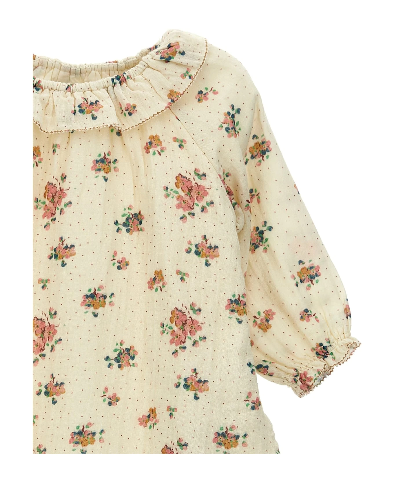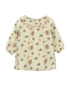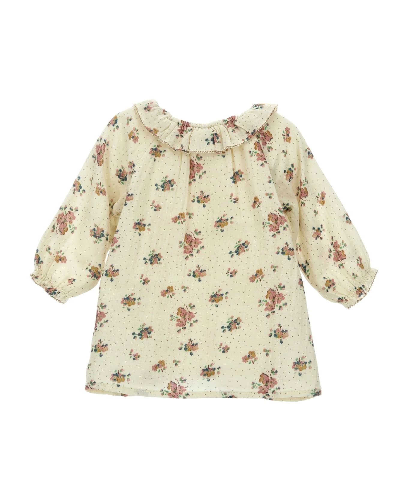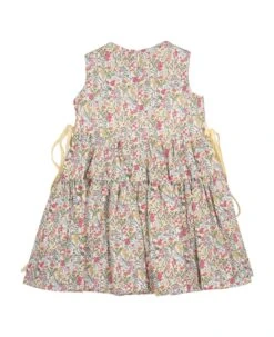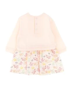 Floral print cotton dress, crew neck, long sleeves with elastic cuffs.