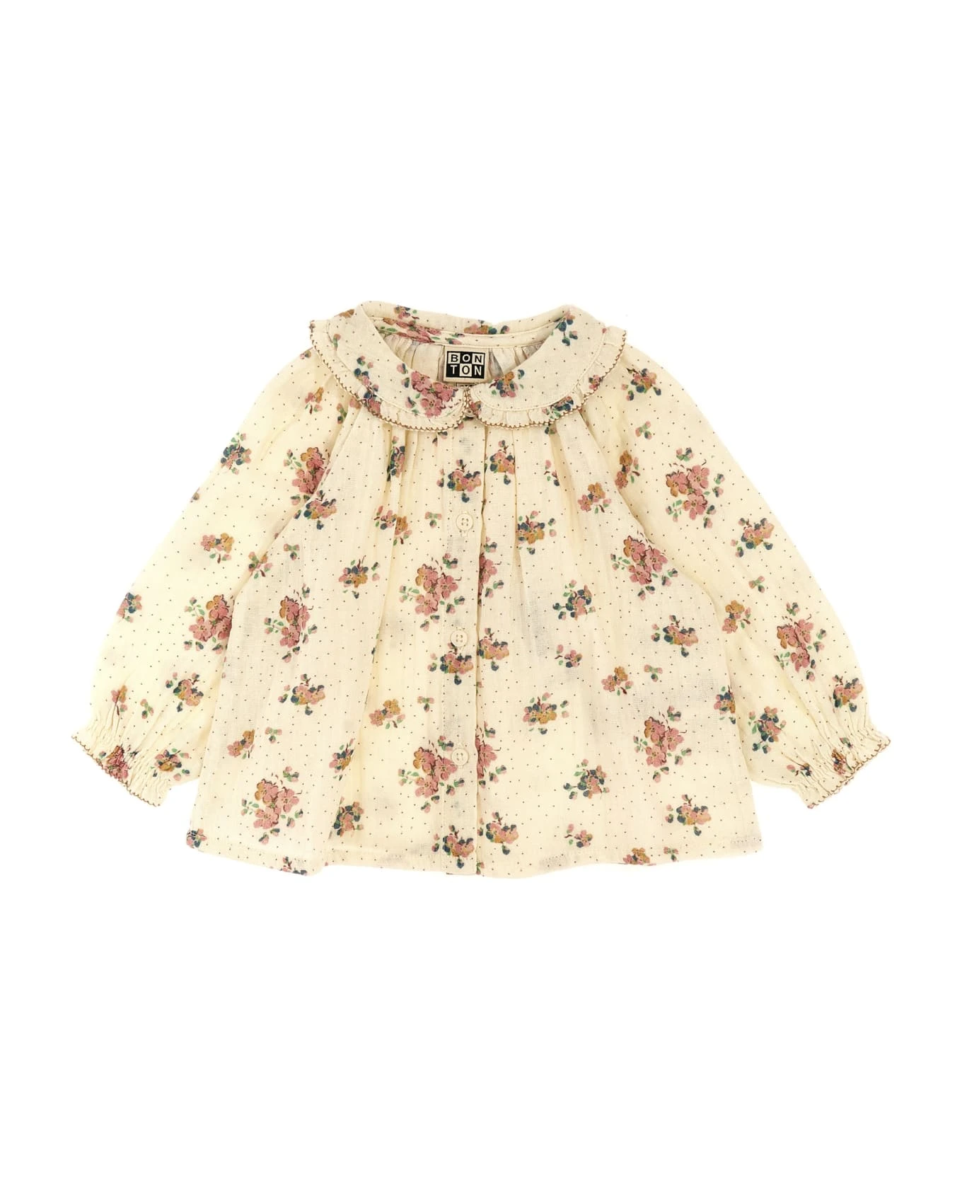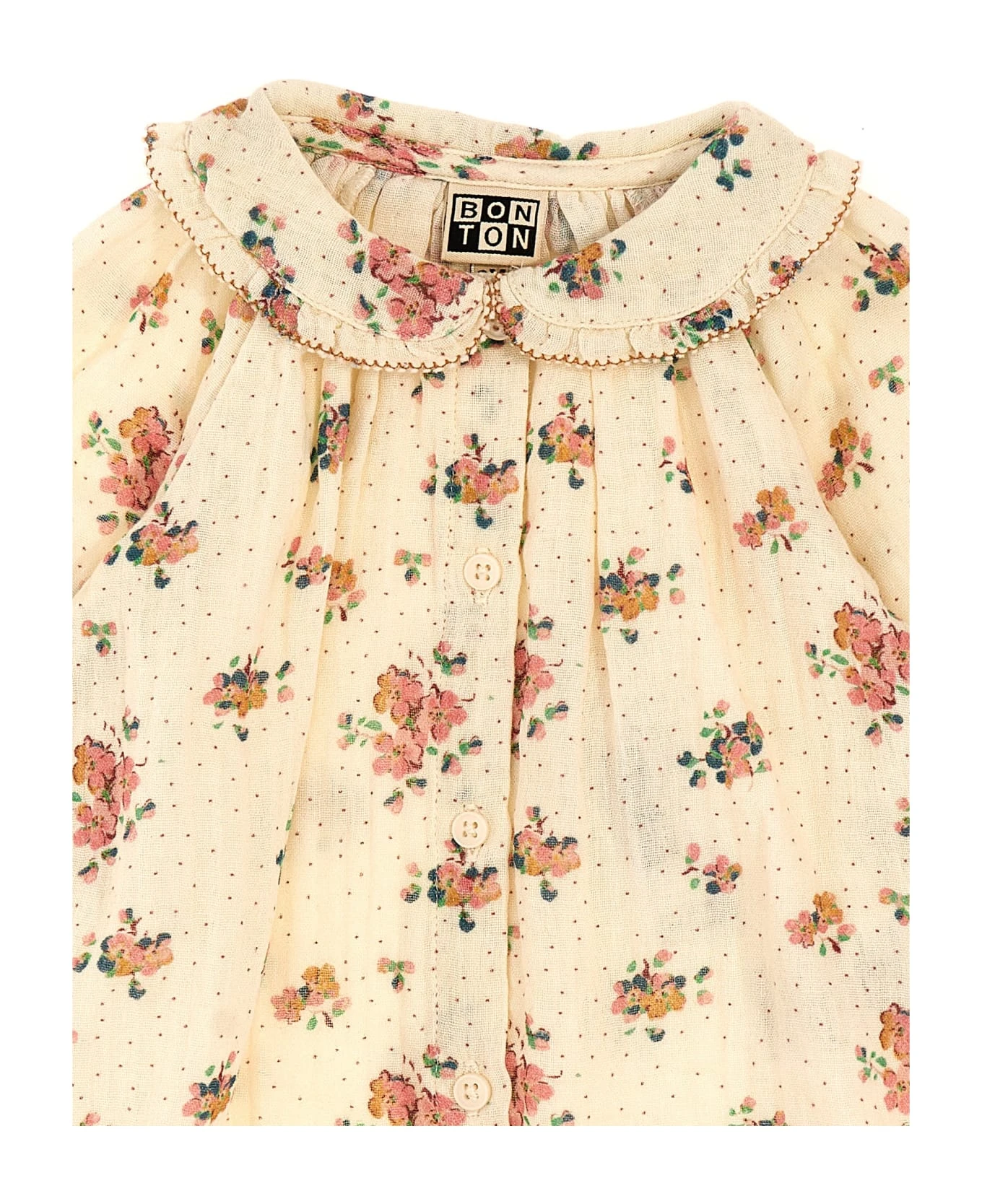 Floral print cotton shirt with long sleeves and elastic cuffs.