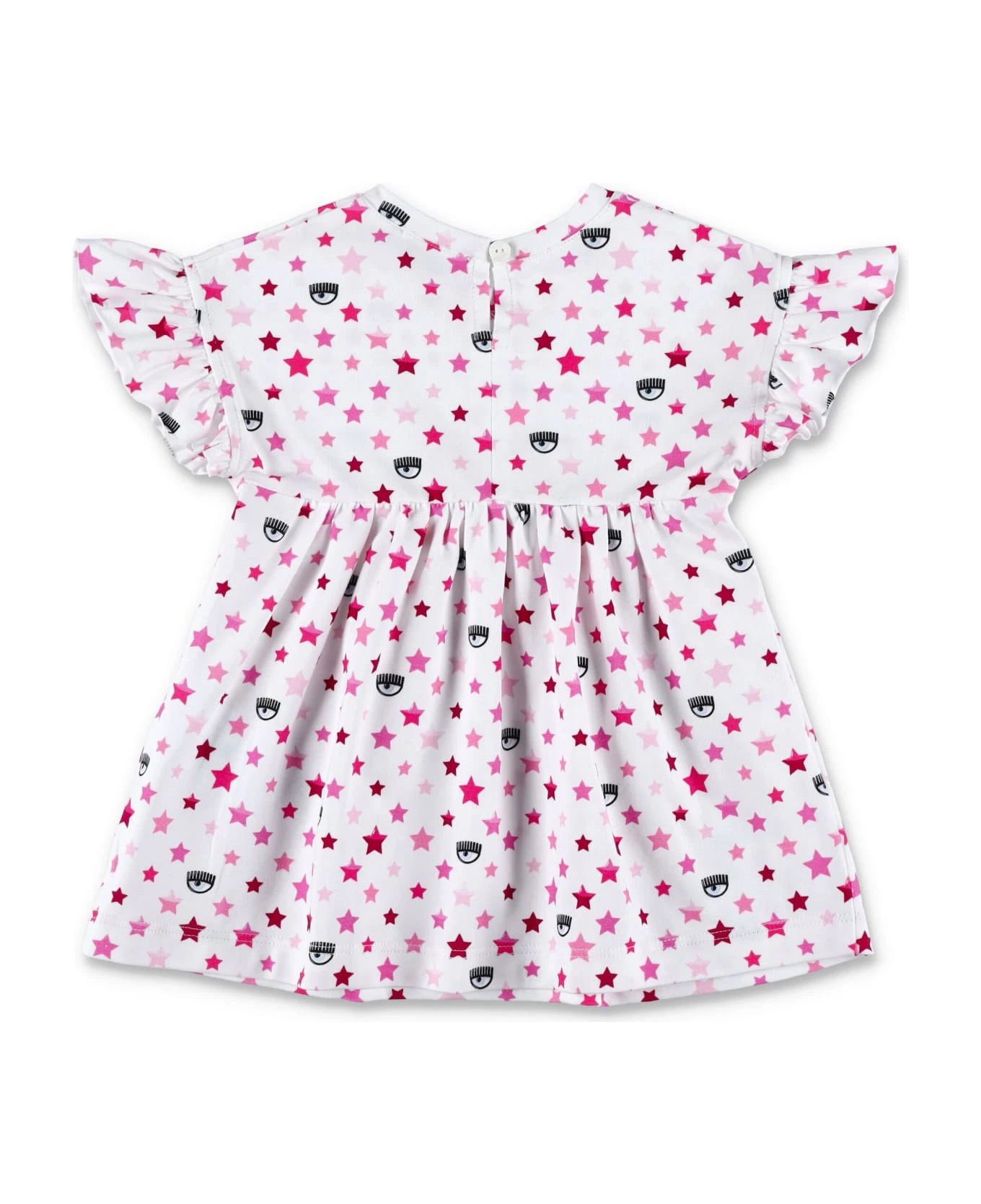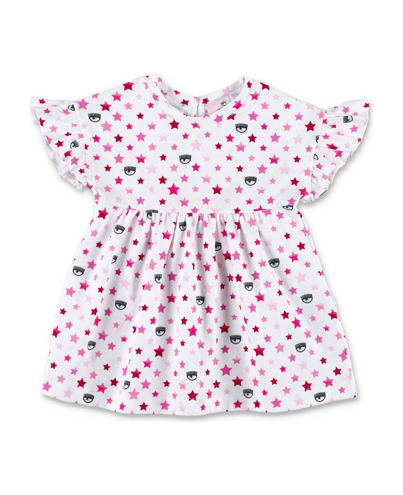 White Stretch Cotton Allover Eye Star Dress By Chiara Ferragni Kids. Featuring: