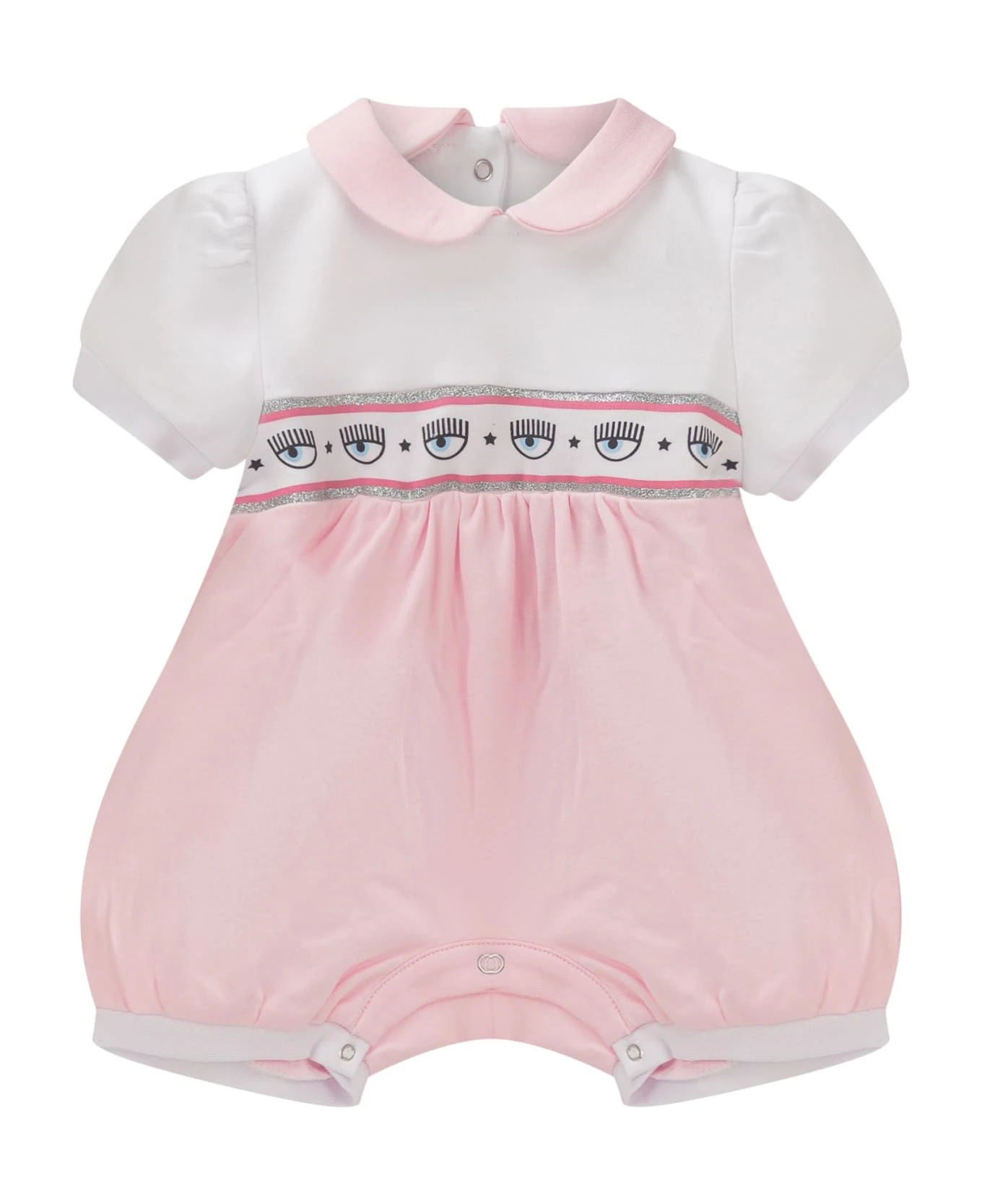Romper with short sleeves. Buttons on the back and bottom. Logomania band.