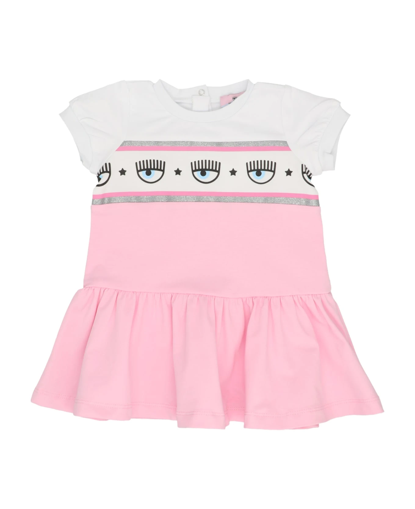Cotton dress featuring a ‘Maxi Logo Mania’ print, a crew neck, shorts sleeves and a flounced skirt.