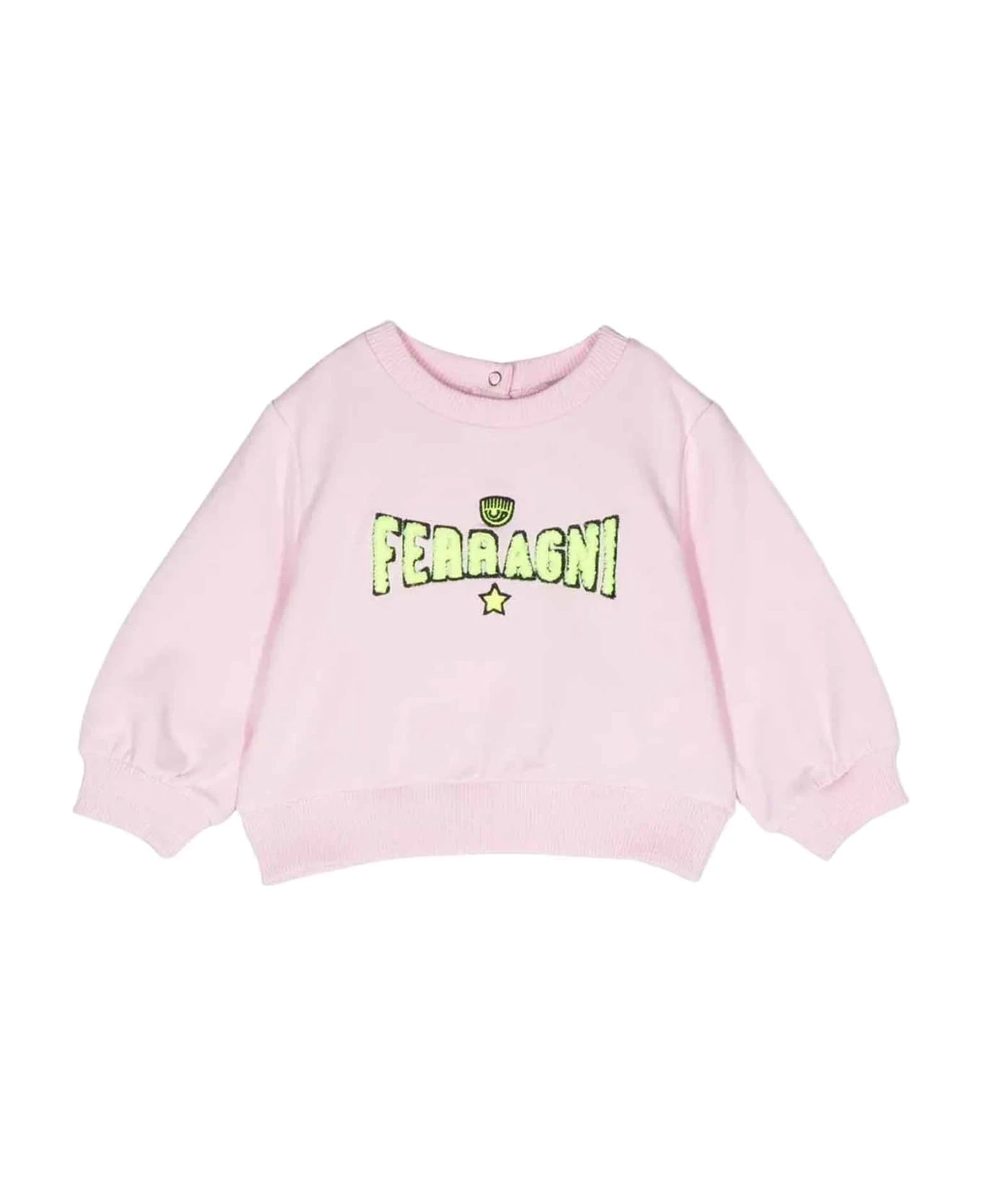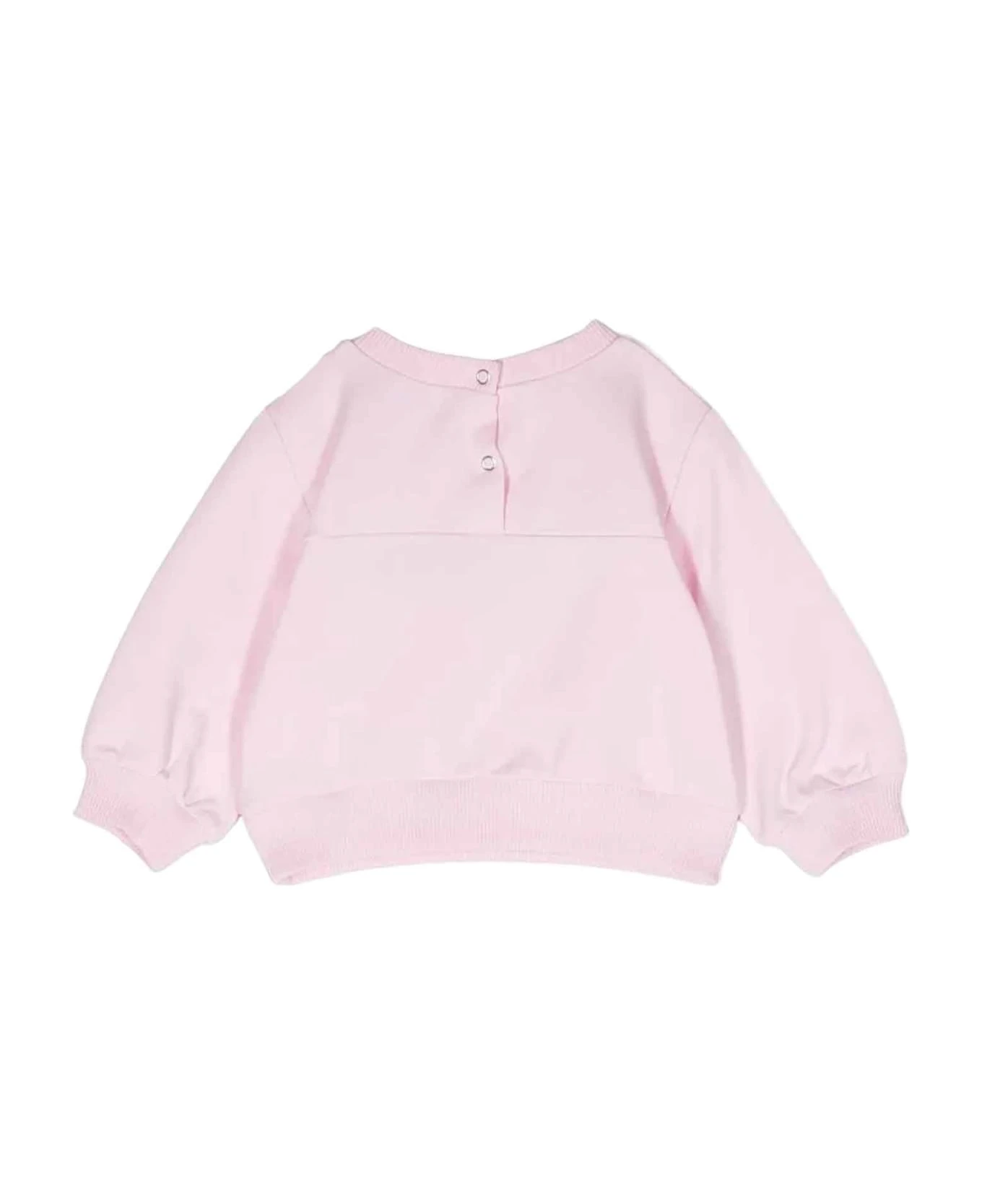 Pink sweatshirt baby girl. Front application with logo, crew neck, long sleeves and back closure with buckle. Cotton 95%, Spandex/Elastane 5%