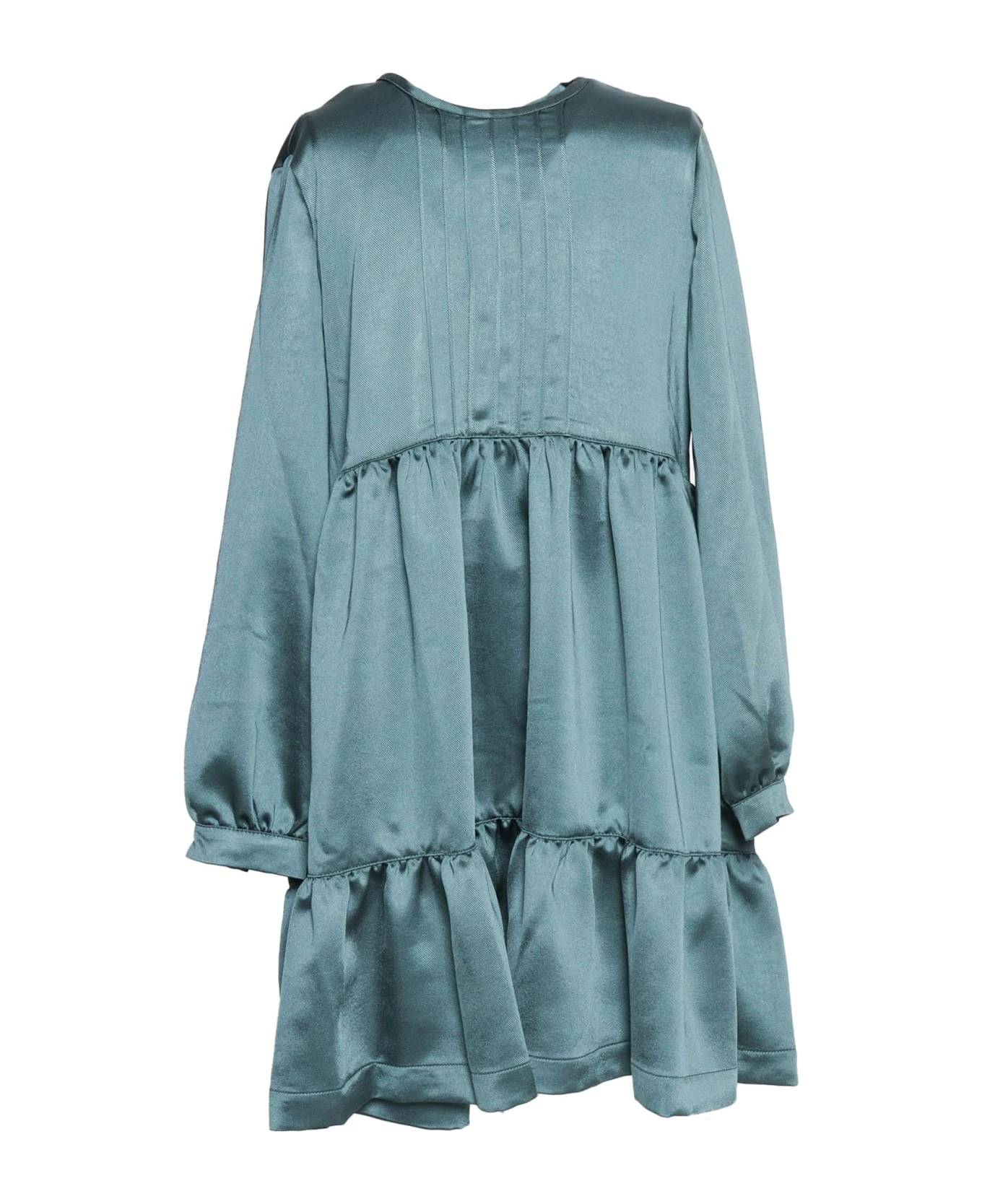 Shiny dress, round neckline, long sleeves, buttoned cuffs, button fastening on the back