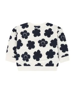 Cotton blend sweater, round neck, teardrop closure on the back, fringed bottom