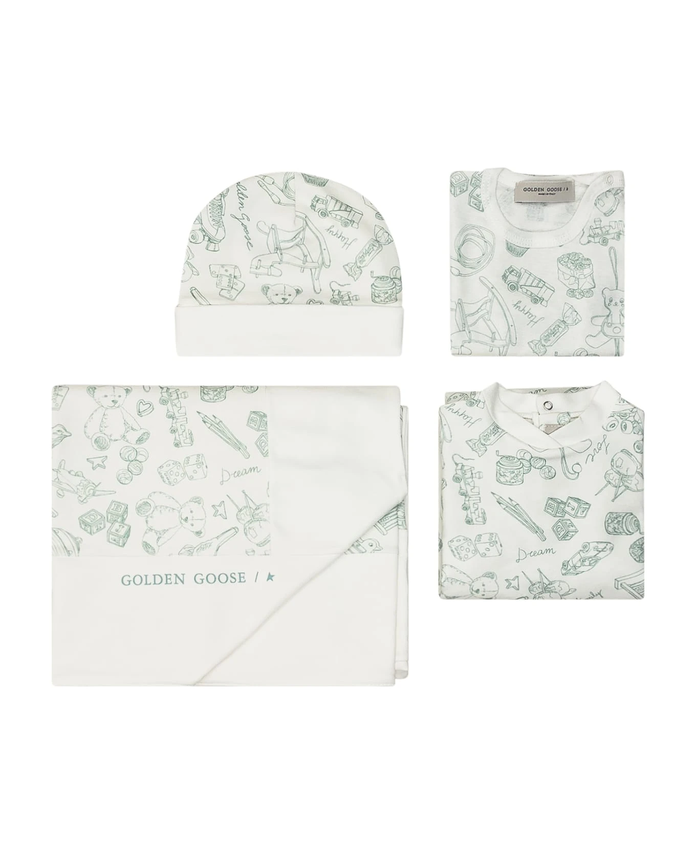 Set Box composed of four elements in green and white cotton.