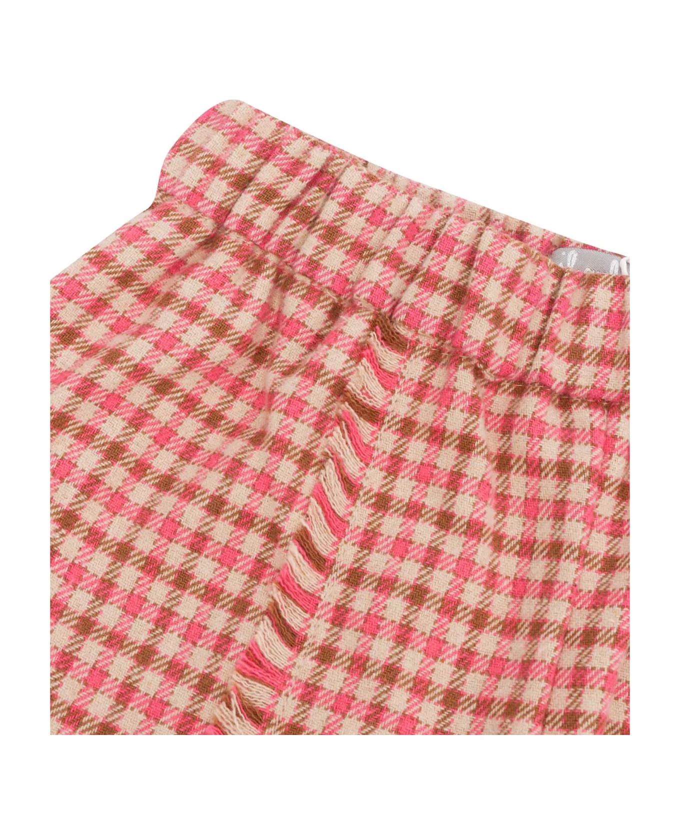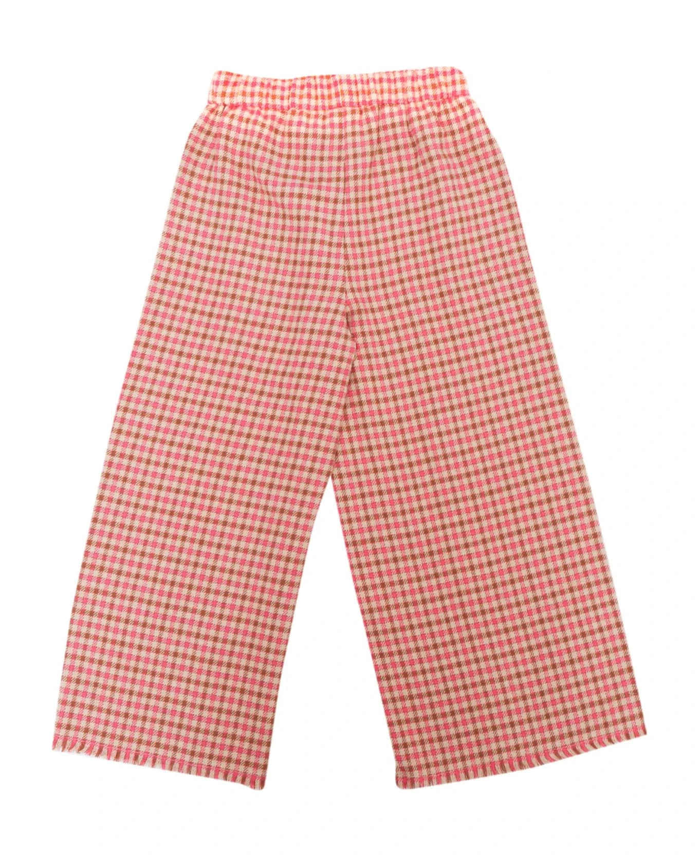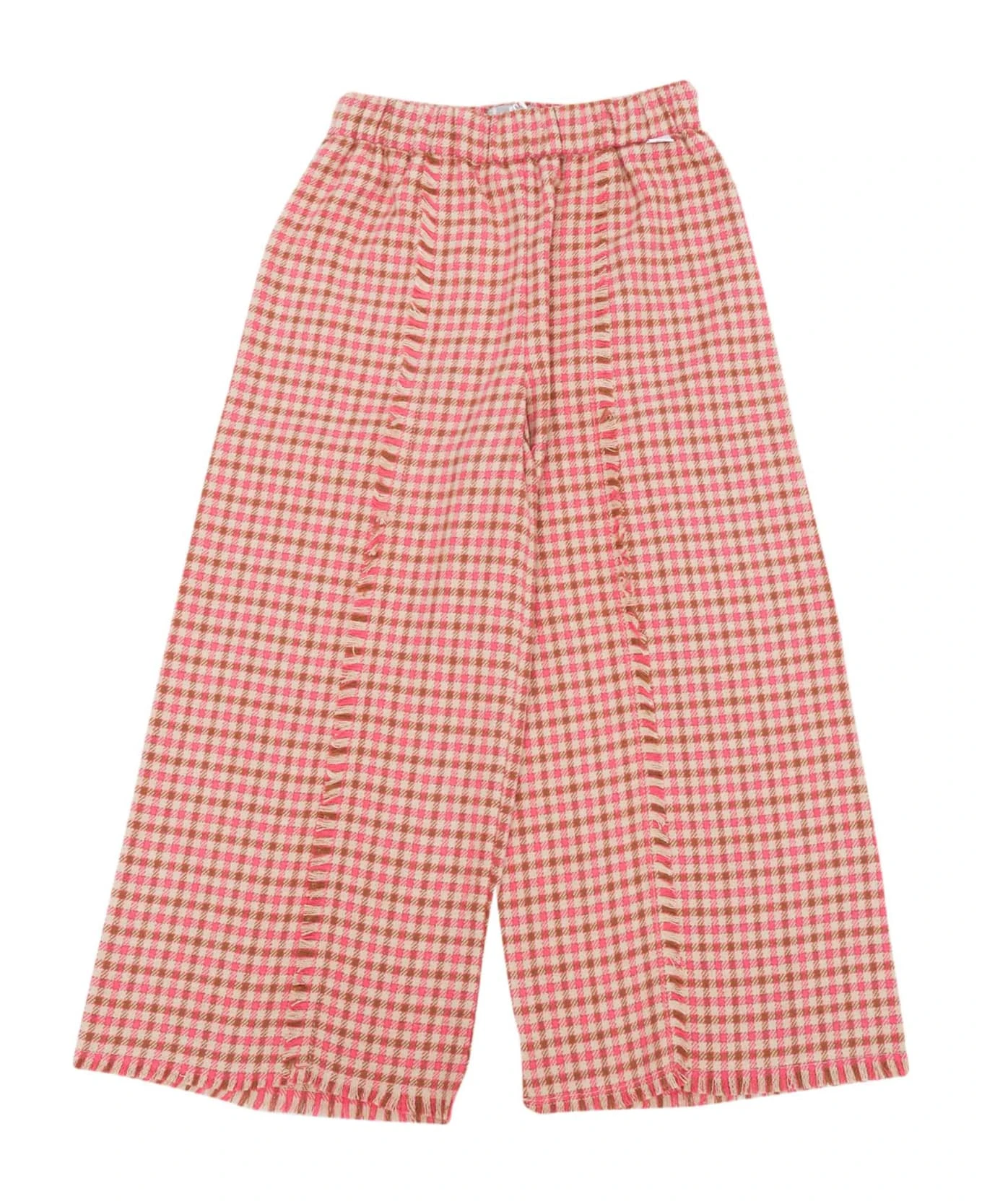 Cotton blend pants, check design, fringed details, elasticated waist, wide leg