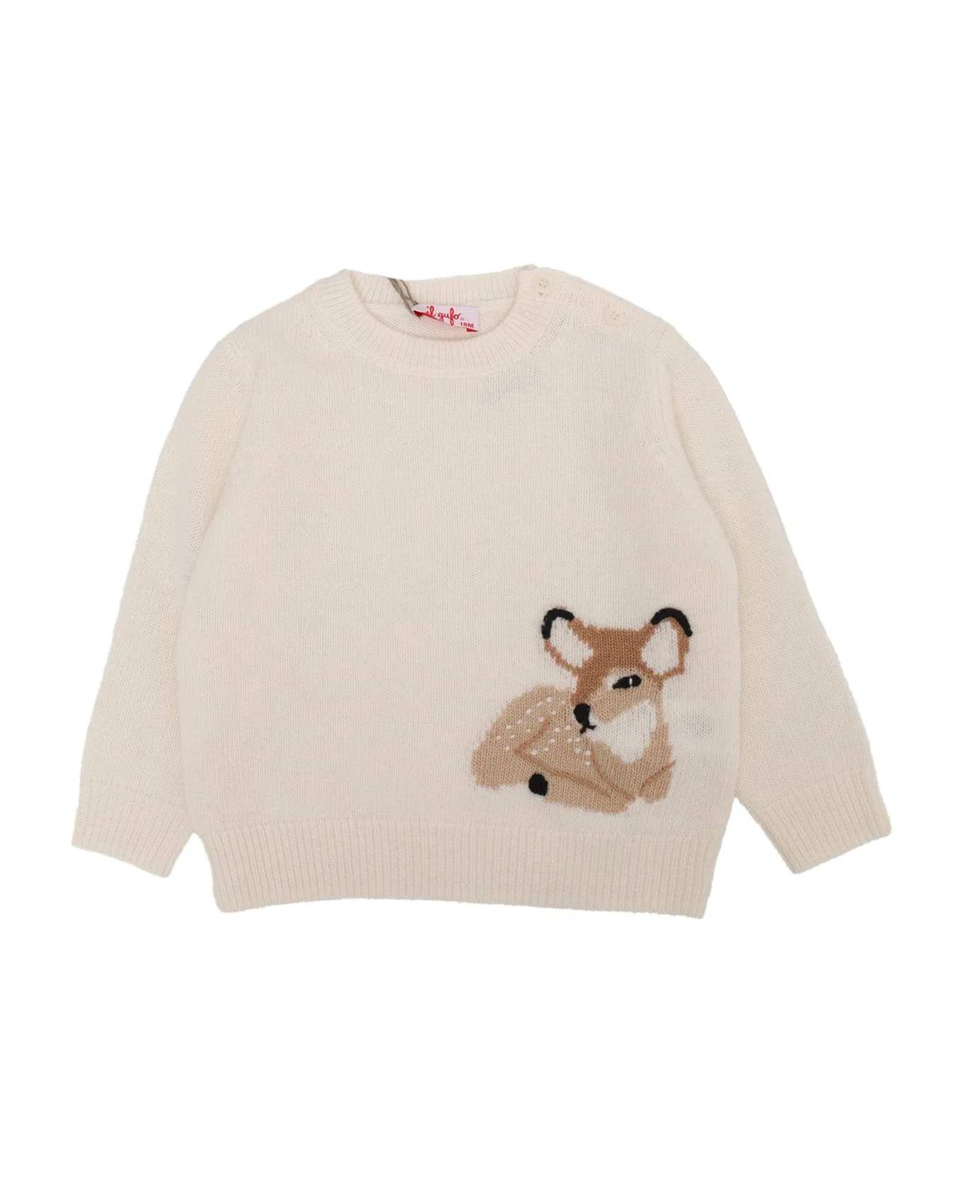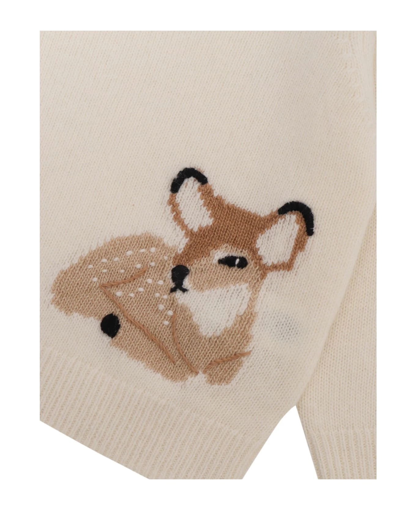 Virgin wool sweater, crew neck, deer inlay, ribbed edges