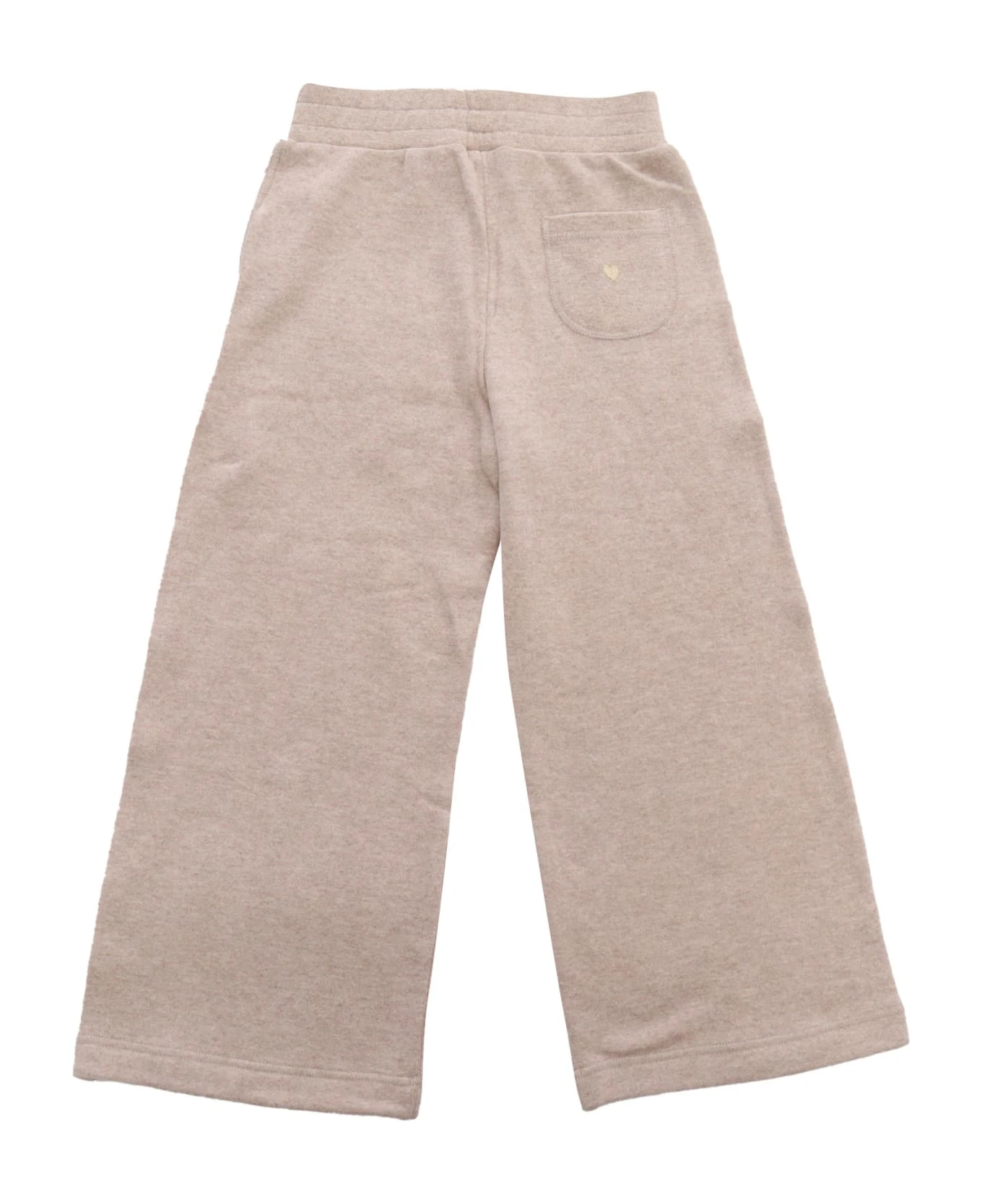 Wide pants in stretch cotton blend, elasticated waist, patch pocket on the back with heart embroidery
