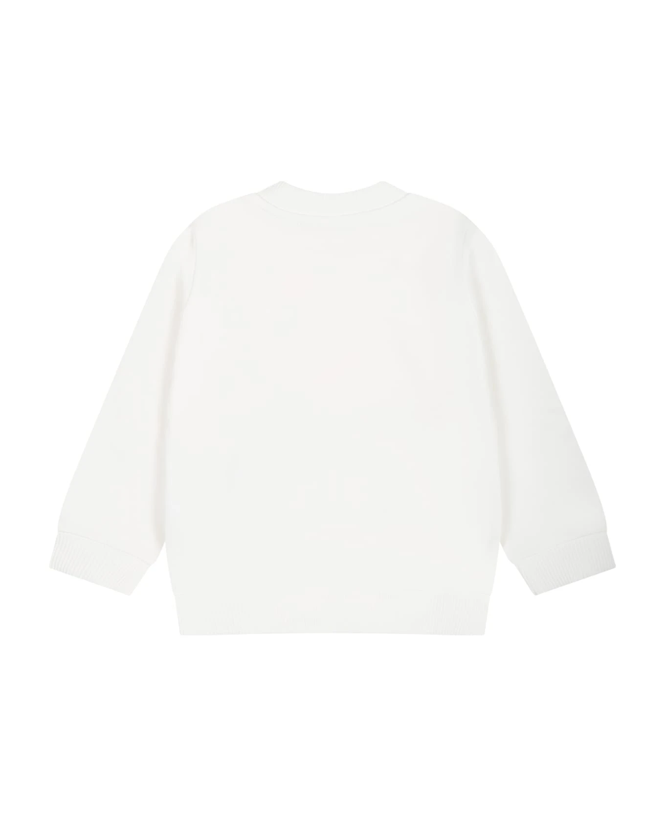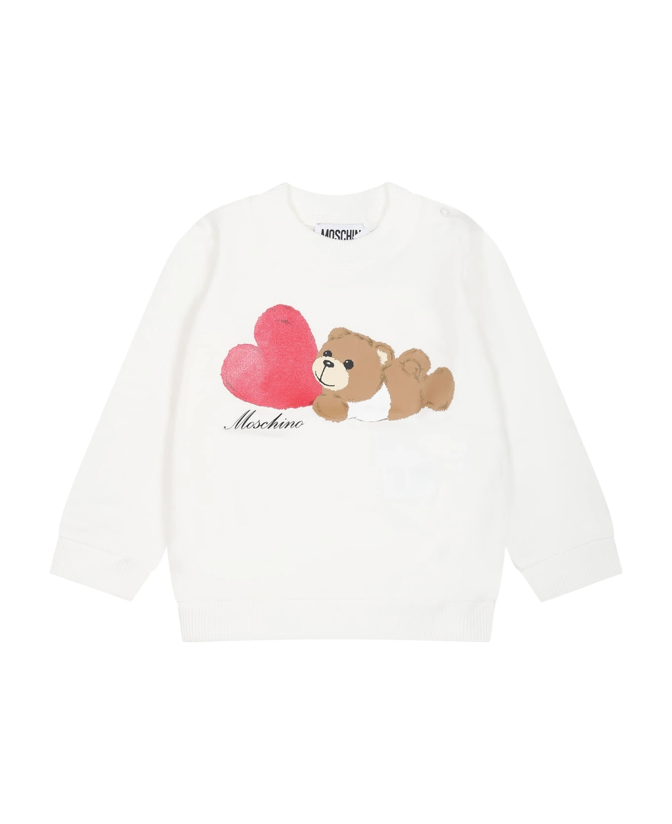 Sweat-shirt blanc en molleton de coton, anches longues, avec col rond, poignets et ourlet c Il est agr nt ‘un Teddy Bear et d’un c ur, sur le devant.