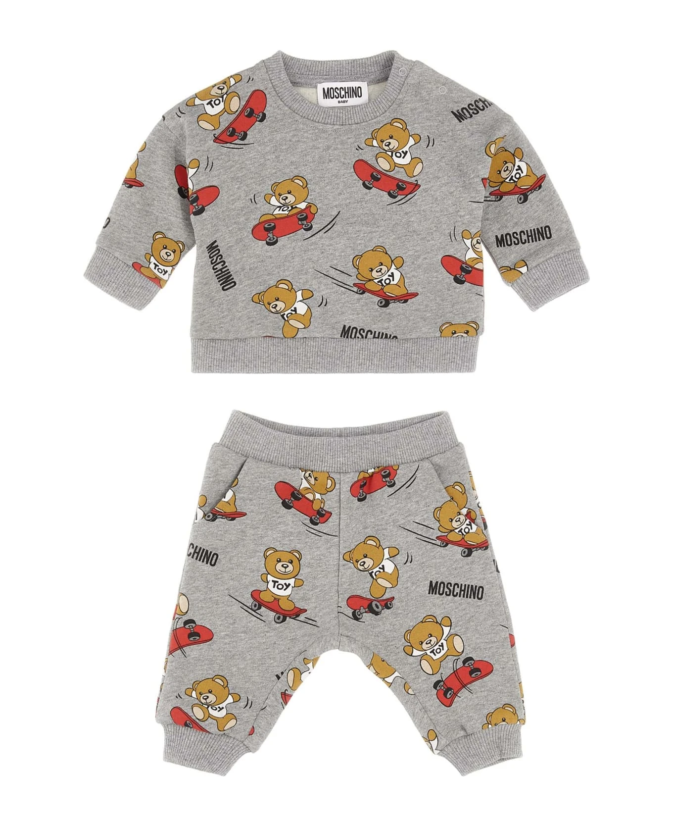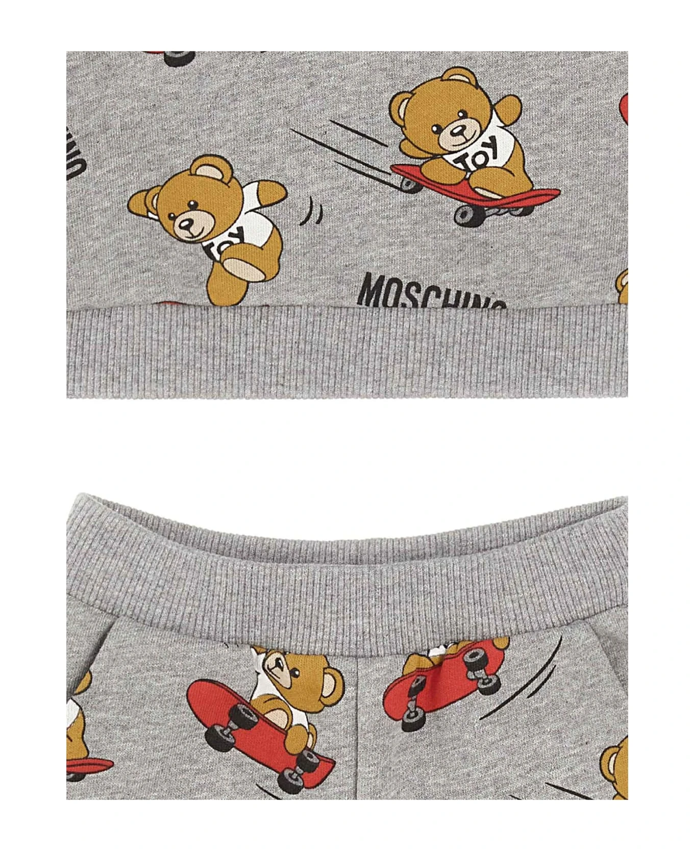 Cotton ensemble, all over teddy logo print, crewneck sweatshirt, pants with pockets, ribbed edges