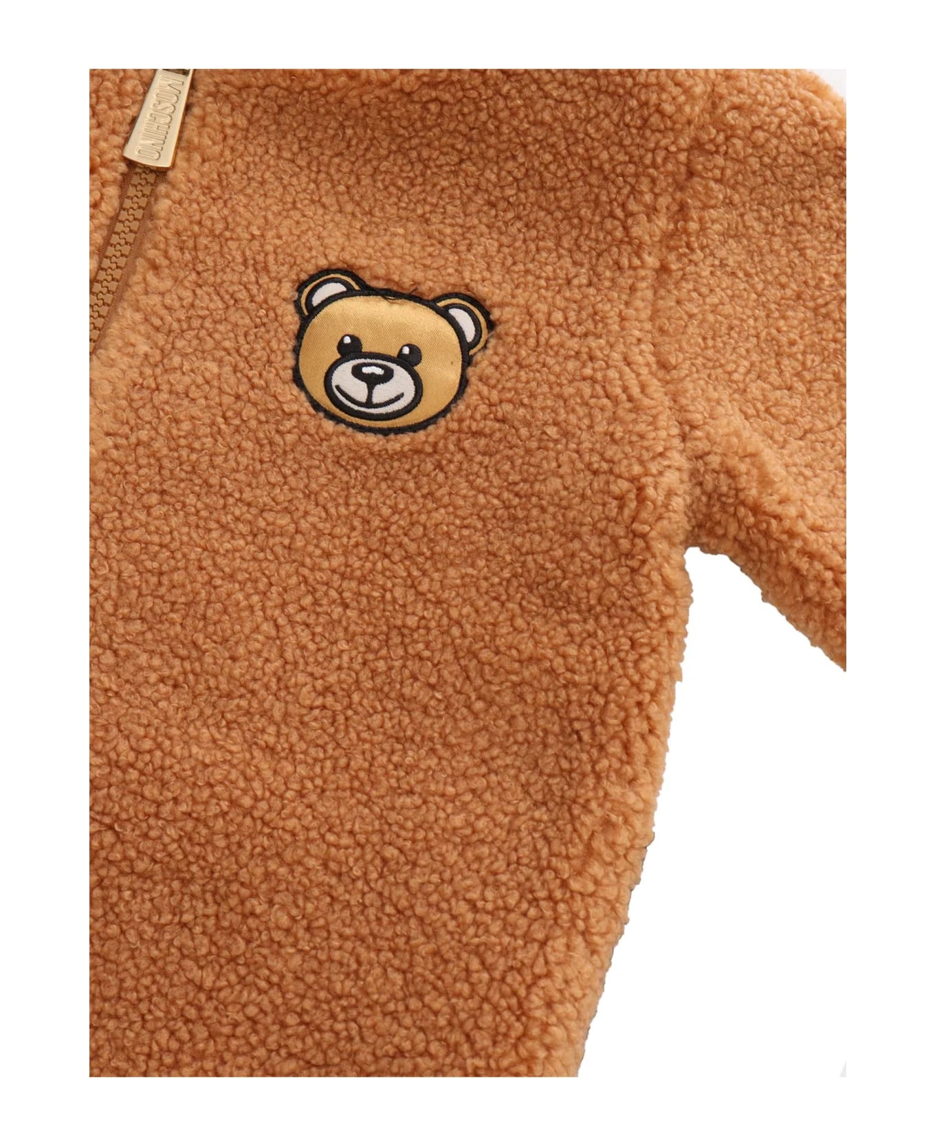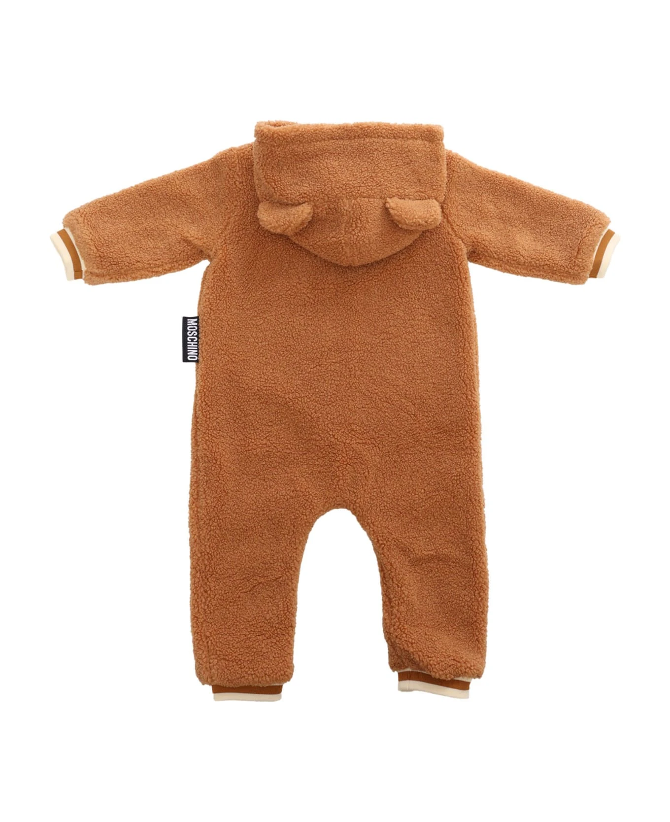 Faux shearling romper, hood with ears, front zip fastening, ribbed cuffs, ribbed ankles, Teddy patch on chest