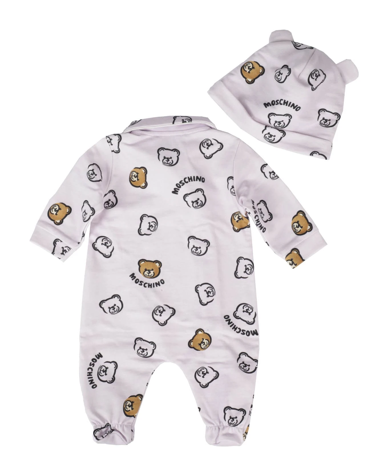 MOSCHINO White Babygrow For Baby Kids With Teddy Bears And Logo