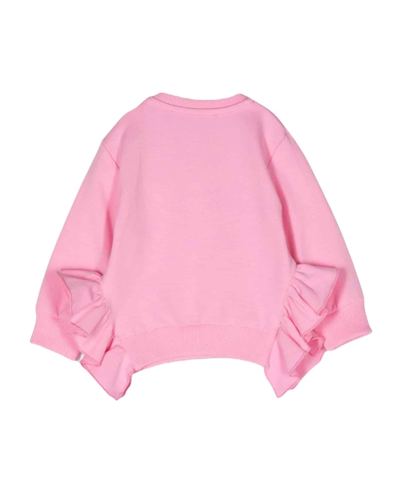 Pink sweatshirt baby girl Kids. Ruffle trim, Medusa head motif, logo print to front, button up shoulder, crew neck, dropped shoulder sleeves and long sleeves. Cotton 94%, Elastane 6%