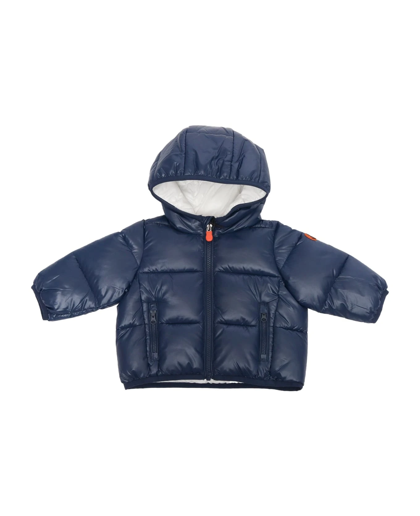 Quilted nylon jacket, synthetic padding, fixed hood, zip fastening, side pockets with zip, logo on the sleeve