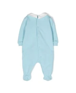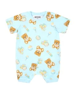 MOSCHINO Light Blue Babygrow For Baby Boy With Teddy Bears And Logo