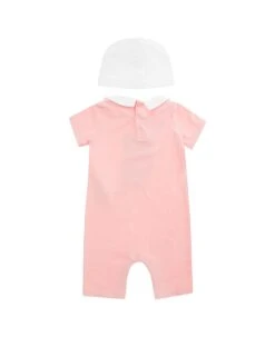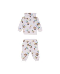 MOSCHINO Pink And White Onesie And Beanie Suit With Teddy Bear Print In Cotton Baby