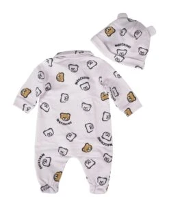 MOSCHINO White Babygrow For Baby Kids With Teddy Bear E Print