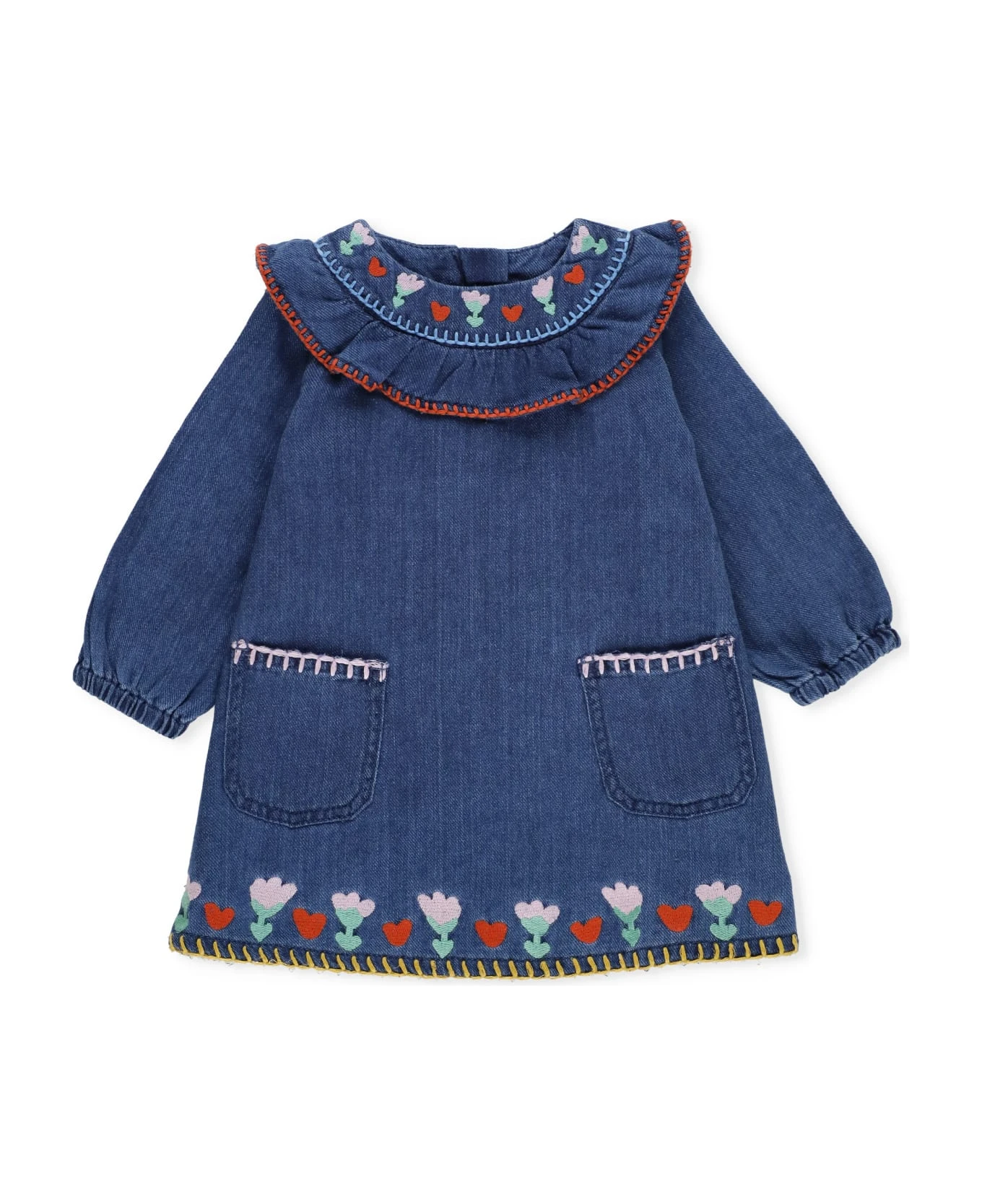 Cotton Dress With Embroideries from Stella McCartney Kids: – Blue Stella Mc Cartney Junior cotton dress for girl