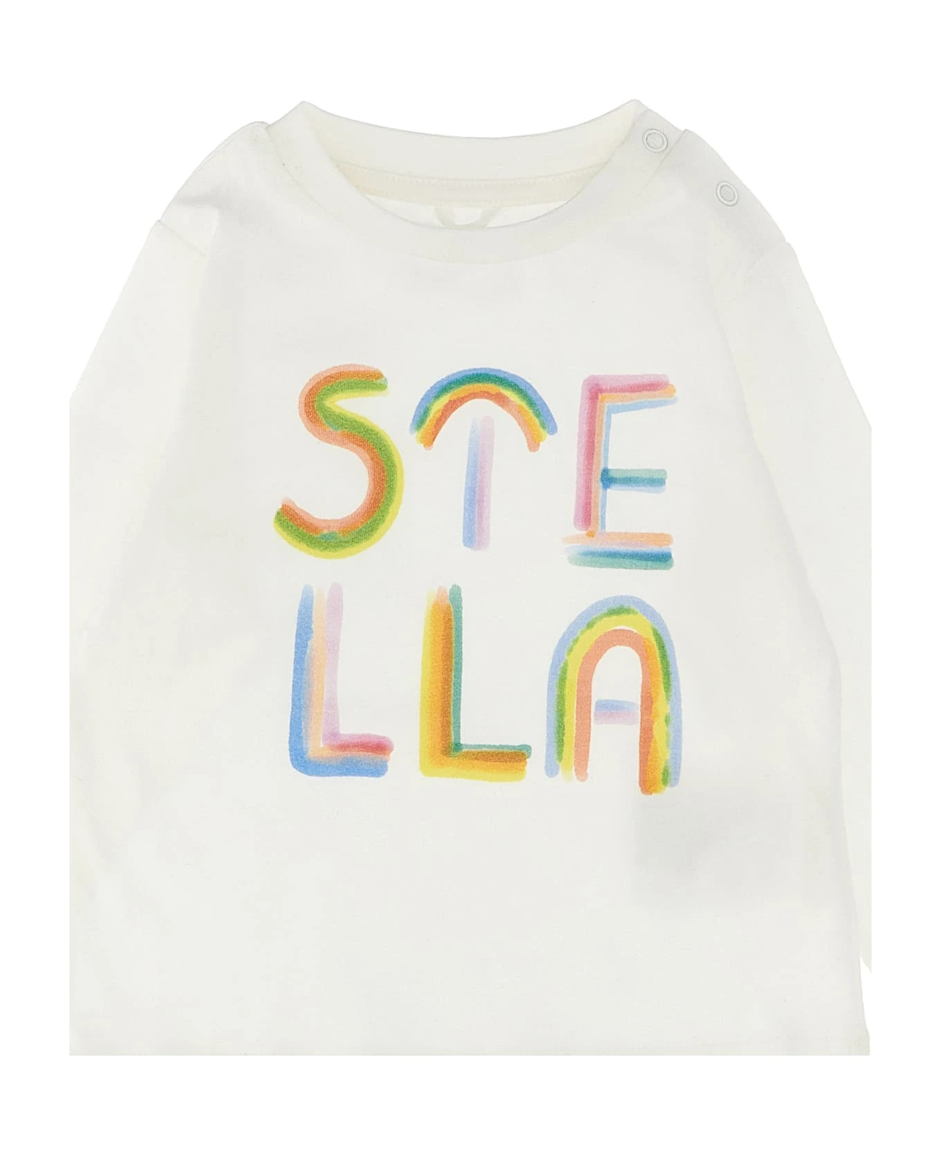 ‘Stella Rainbow’ cotton crew neck t-shirt with front logo print and long sleeves. : This product is made from organic cotton.