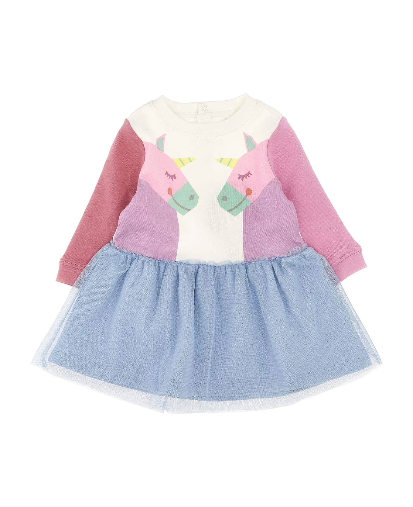 Unicorn’ cotton dress with print, tulle skirt, crewneck, long sleeves. : This product is made from organic cotton.