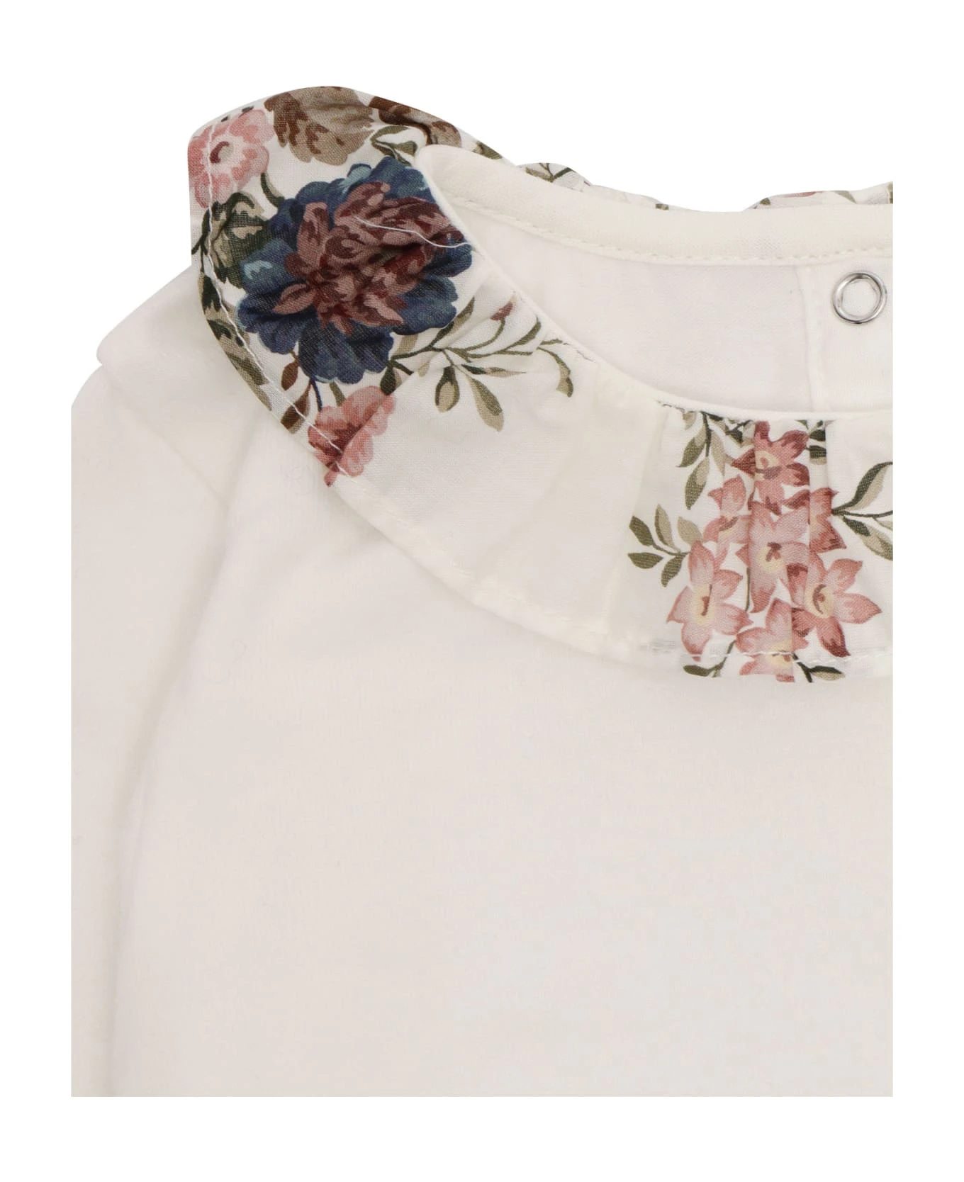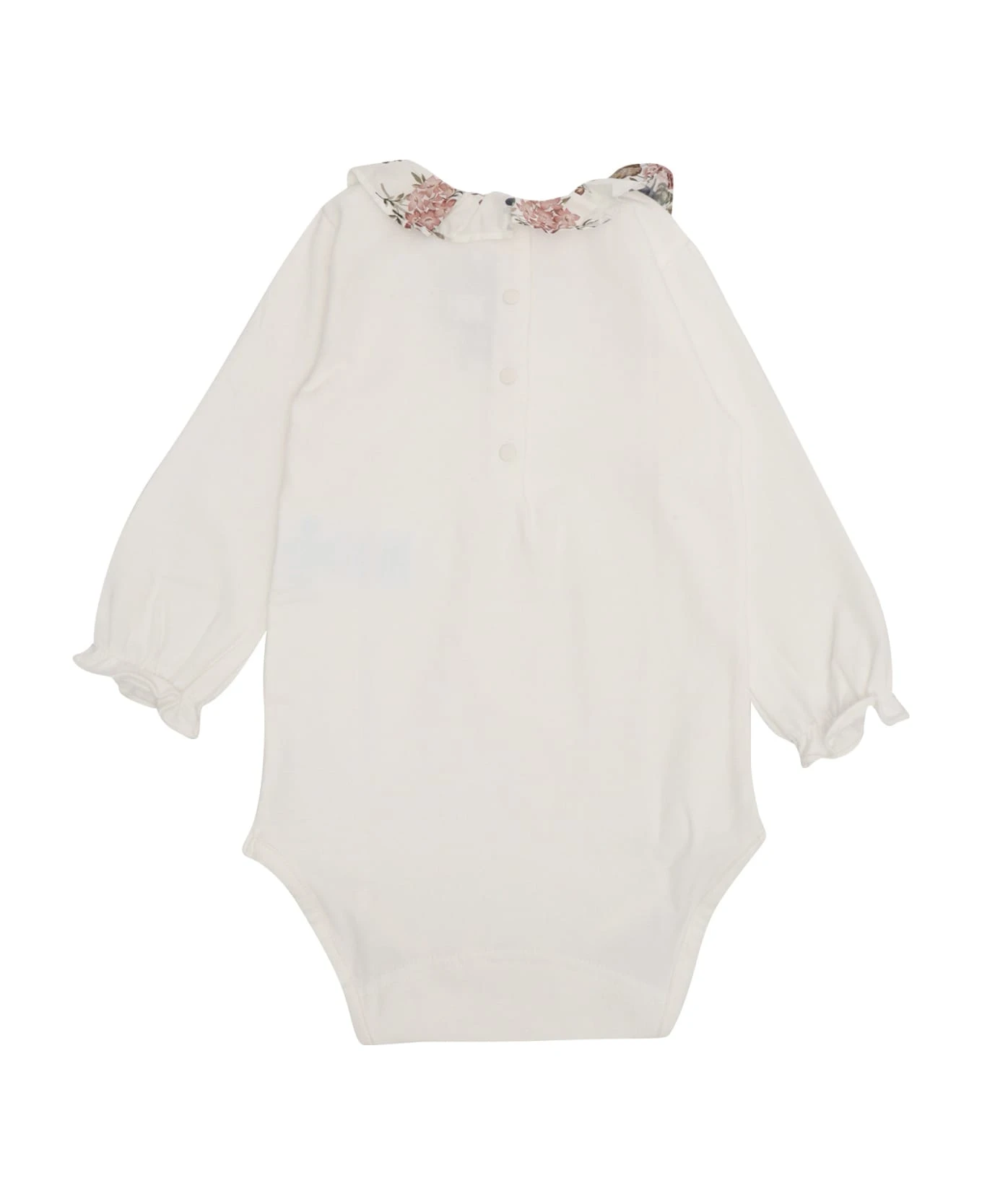 Stretch cotton bodysuit, floral print collar, long sleeves, press stud fastening at the bottom, rear press stud fastening