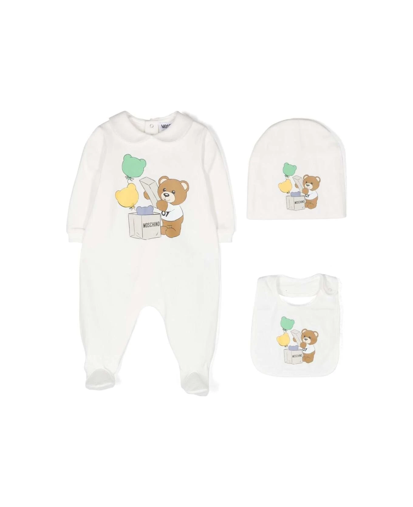 Onesie, beanie and bib ensemble