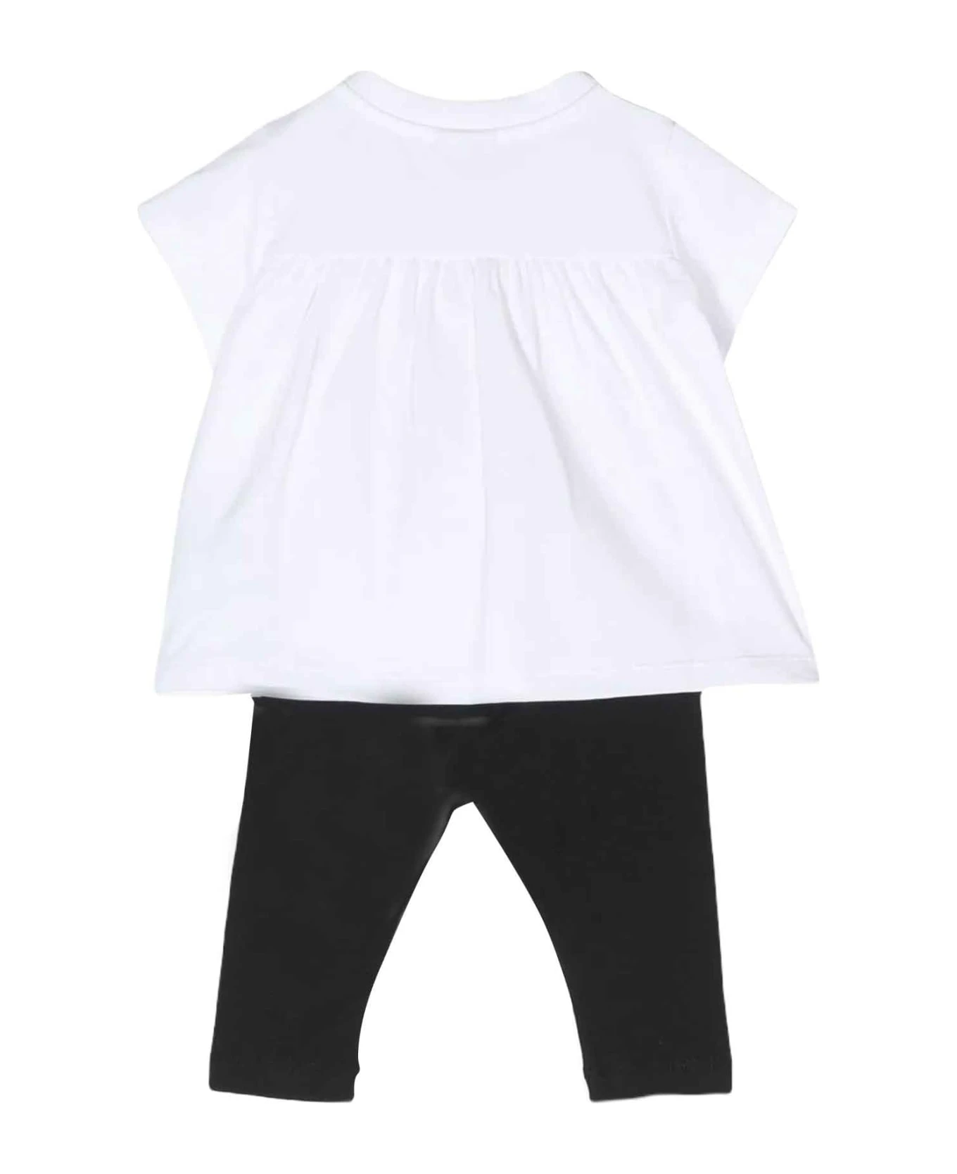 white set baby girl. Logo print on the front, fruit print, elastic waist, round neck and short sleeves. Cotton 95%, Spandex/Elastane 5%